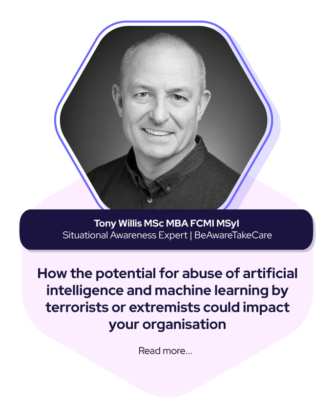 Tony is a Fellow at the Chartered Institute of management and the Institute of Strategic Risk Management and a member of the Security Institute.